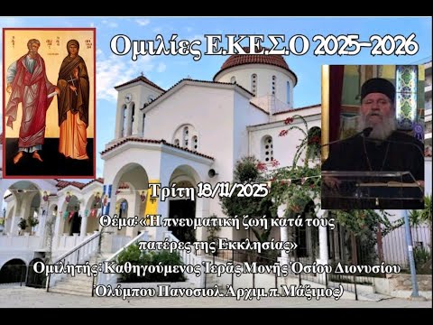 ΚαθηγούμενοςἹ.Μ.Ὁσίου Διονυσίου Ὀλύμπου π.Μάξιμος-«Ἡ πνευματικὴ ζωὴ κατὰ τούς πατέρες τῆς Ἐκκλησίας»